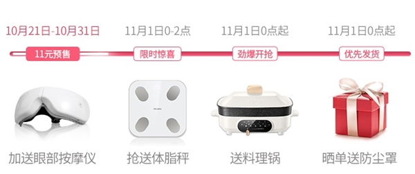 雙十一搶購攻略如下:即日起-10月31日,11元預售送眼部按摩儀,更抵3000元。并尊享3年質保和1年價保服務。11月1日0-2點限時搶購送體脂秤、購機加送蘇泊爾料理鍋、關注加購送養護大禮包、曬單還有按摩椅防塵罩,這波福利可謂滿滿當當!