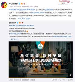 而海信空調同樣在微博、微信等客戶端以#3分鐘就上場#為主要話題開啟賽前預熱,強勢出道,率先吸引球迷群體的注意力。海信空調選取考試收卷前的3分鐘、上臺前的3分鐘、破門前的3分鐘還原在關鍵時刻來臨前時的緊張心情,留下時間懸念,最后出現的海信新風空調,揭曉“3分鐘”謎底 ——開機3分鐘,滿屋是新風,海信新風空調助你面對每個關鍵時刻,讓你輕松上場。