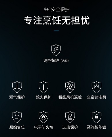 使用廚電,第一要安全,第二要健康。森歌蒸烤一體集成灶擁有8+1安全防護(hù)系統(tǒng),一天24小時(shí)守護(hù)家居生活的安全。蒸烤箱304食品級(jí)不銹鋼材質(zhì),耐高溫耐腐蝕,可以直接與食物接觸。同時(shí),在高溫蒸汽環(huán)境下使用,也不會(huì)有任何氣味釋放,從基材上杜絕甲醛危害。與此同時(shí),光滑的鏡面內(nèi)膽,也不會(huì)為細(xì)菌滋生提供場(chǎng)所,使用起來(lái)也更加環(huán)保健康。