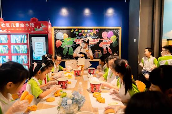 肯德基同安路汽車穿梭餐廳是一個非常有特色的社區兒童繪本館餐廳,在這個飄散著吮指原味雞、漢堡香味與書頁油墨清香空間里,孩子們通過幾樣食材的簡單搭配,親手制作出一份美味的漢堡。看著眼前的“勝利成果”,他們臉上都洋溢著歡快的笑容。