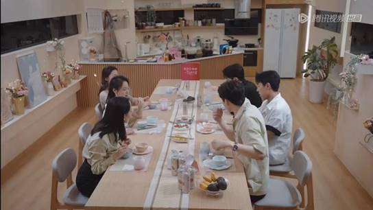 幾人開始準備食物時,薛喆陽為郭浩然系圍裙更是貢獻了特別的“心動”畫面,當兩位女生紛紛躍躍欲試的想要幫薛喆陽系圍裙,他立馬反手自己系好,讓場面變得有趣起來。李聶霜玉此時到來,在一番觀察后也加入到了“廚房紛爭”當中,此舉動獲得了觀察室眾位偵探的好評,直言李聶霜玉操作很優秀。隨后最后一位嘉賓張根源到達,六人在餐廳落座,在觀察室的汪蘇瀧不禁發出又到了怎么坐座位的名場面的感嘆。