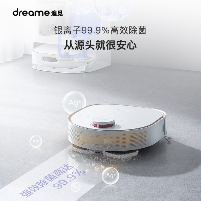 為將居家健康進行到底,追覓科技在W10 Pro的設計中將掃拖洗烘一體與強效除菌進行了開創性結合。“4000Pa大吸力”、“前置加長滾刷”、“雙盤拖布加壓擦地”這些硬核配置確保臟污清潔一次到位。與此同時,還特別設計了除菌裝置,通過銀離子的長效抑菌的特性,將消殺工作貫穿始終:在水箱內置銀離子緩釋顆粒,讓銀離子水浸濕拖布,對拖布本身進行殺菌,確保清潔源頭潔凈,而后在濕拖過程中一邊清潔地面污漬,一邊對地面進行消殺;最后,污水回收至污水箱,銀離子依舊可以延緩污水發臭,抑制細菌滋生。整個過程與日常殺菌、消毒方式相比更加安全溫和,再也不用擔心寵物亂跑、寶寶爬來爬去的健康隱患。