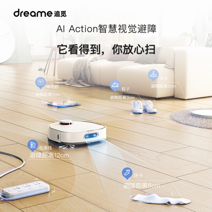 在避障方面,該款機器人采用ToF+AI視覺識別系統,相比傳統避障方式,W10 Pro具備更高的物體識別準確度,通過識別、理解物體類型,如襪子、電源線、體重秤、鞋子、吧臺底座等地面常見障礙,做出相應的避障規劃和更優的清潔路線。