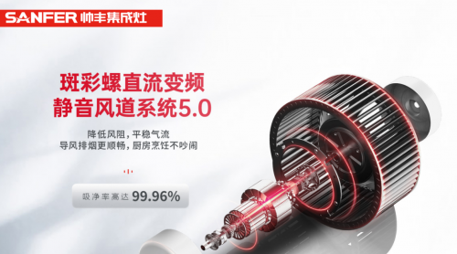 油煙問題是廚房中最大的安全隱患,鐘南山院士就曾提及中國患肺癌女性中,60%與廚房油煙相關,呼吁大家關注廚房油煙問題。針對這一隱患,帥豐推出了斑彩螺直流變頻風道系統5.0,改變了傳統吸油煙機風道系統的結構,采用一體式風箱,將風道設計為螺旋口,減少風阻的同時極大的降低了噪音,風壓由原來的800Pa升級到1000Pa,風量最高可達到19m/min,油煙吸凈率高達99.96%,這一創新科技讓廚房實現了“靜”與“凈”的雙突破。