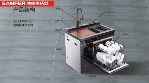帥豐全新洗碗機集成水槽專為中國家庭設計,擁有12套雙層大容量,炒鍋、湯盆、碗碟、勺子等各樣物件都可以放入,一次能清洗5—8人的餐具。集成水槽擁有三振子超聲波功能,可以深層凈洗果蔬、海鮮等食材殘留的污漬。洗碗機內兩個噴淋壁噴出高溫高壓強勁水流,將所有污漬沖得無影無蹤,同時清洗、消毒分階段有效進行。還有雙重烘干系統,烘干殘留水漬并保持48小時長效干爽抑菌儲存。集洗凈烘存多功能集于一體,不管是餐前備菜,還是餐后清洗、消毒餐具它都能輕松搞定。