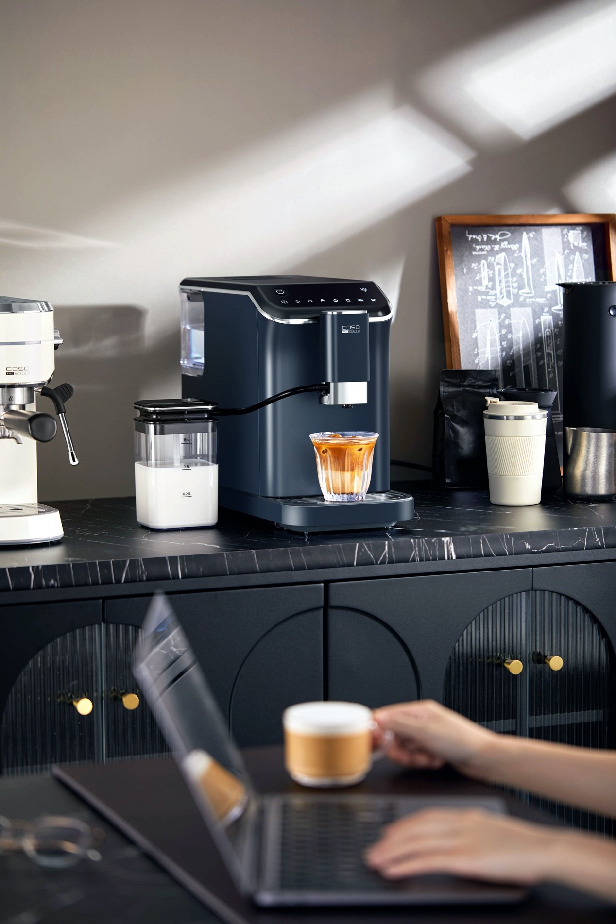 但我始終認為,生活不應該只有“躺”和“卷”兩個選項,在奮斗拼搏的同時,也可以以多關心一下自己的需求,在匆忙趕路的途中也收獲細碎的美好和確幸。就比如冰美式這件事,既然無法拒絕熬夜和加班,那就讓味蕾盡可能舒服一點吧,前不久和部門的同事們商量了一番,決定共同合買一臺咖啡機,放在辦公區供大家使用,經過反復挑選,最終我們選擇了CASO卡梭家出品的全自動咖啡機,它不需要單獨萃取再打奶,一鍵就可以直出濃香可口的拿鐵,機器還內置了7大功能菜單,無論是拿鐵、卡布奇諾、還是意式,都能輕松制作。