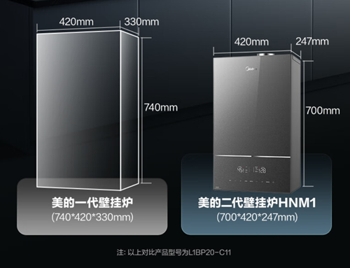 當然優質的產品更注重細節的把控,消費者在更新壁掛爐的時候,往往也會考慮到是否和裝修環境相匹配。在這一方面美的HNM1壁掛爐作為二代產品,深刻理解消費者的這一需求,在設計上做了精心優化,整體機身體積減小約30%。小巧的機身,不僅節省了空間,更讓壁掛爐能夠更好地融入各種裝修風格之中。