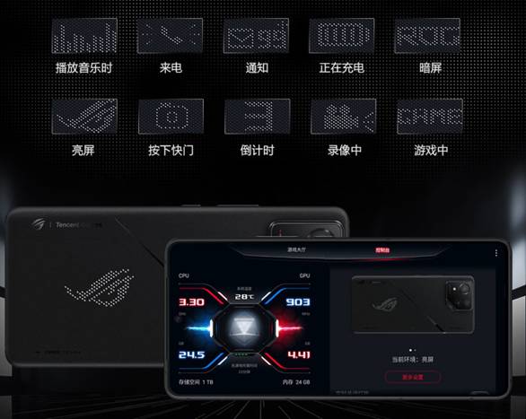 作為以用戶體驗為先的旗艦游戲手機,ROG 8系列在具備硬核游戲性能的同時,還全方位照顧到用戶的日常使用體驗。其正面采用2500nits峰值亮度的6.78英寸AMOLED 165Hz刷新率電競屏,超窄邊框使其屏占比達到94%,視覺體驗更出彩。背面相較于前代更加簡潔,五邊形鏡頭+ROG LOGO+“Republic of Gamers”字標彰顯潮酷,ROG 8 Pro則融入了AniMeVision 光顯矩陣屏,能顯示動態圖案、文字,辨識度與個性化拉滿。此外,全系在保留3.5mm耳機孔的前提下首次支持IP68防水防塵,賦予游戲手機更強的耐用性。