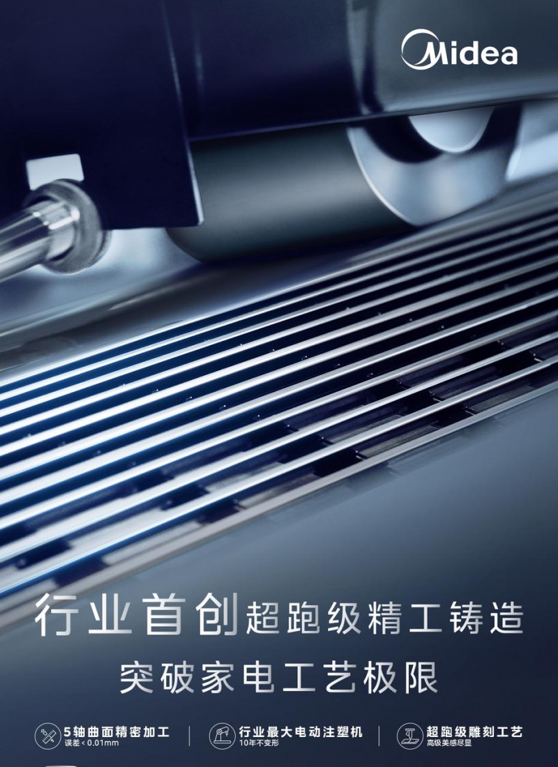 工藝方面,美的全面風空調(diào)Pro也絲毫沒有怠慢,格柵面板采用了5軸精密加工+4向抽芯模型工藝,令每一條格柵都平整入境,沒有絲毫的瑕疵。同時,空調(diào)行業(yè)最大1000噸級超精密電動注塑機的應用,讓長達1.4米的格柵對角誤差控制在了0.01mm以內(nèi),不僅耐用度提升了3倍,更保證了產(chǎn)品的質(zhì)量,長達10年使用不變形。值得一提的是,美的空調(diào)還聯(lián)手擁有200年歷史的德國品牌庫爾茲,將超跑級的雕刻工藝融入全面風空調(diào)空調(diào)Pro的制造之中,通過5重精密處理以及三向Z形雕刻工藝,讓5層厚金屬層完美燙印貼合,每一處弧面都閃耀著金屬拉絲光澤,高級美感盡顯。