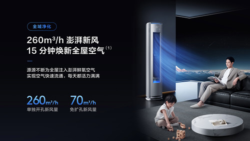 值得關注的是,TCL小藍翼C7新風空調柜機再次實現技術創新突破,通過行業首創超大風量外循環新風凈化系統+固體堿+瀑布離子,實現客廳的三層全域凈化,為用戶打造全方位的健康空氣防護體系。