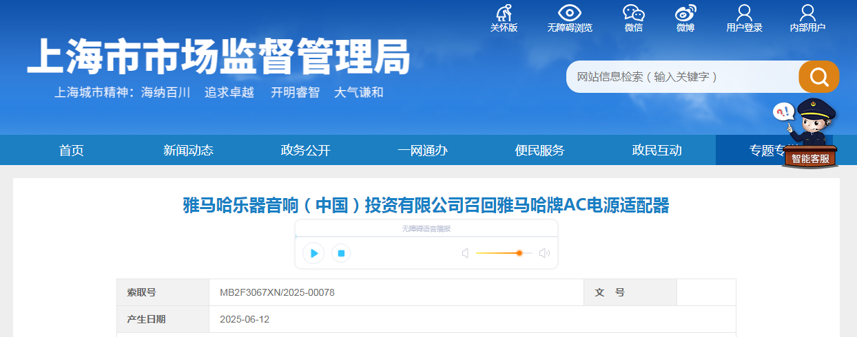 對此,雅馬哈樂器音響(中國)投資有限公司表示,將發(fā)布召回計劃并為消費者免費更換適配器。(段淺量)