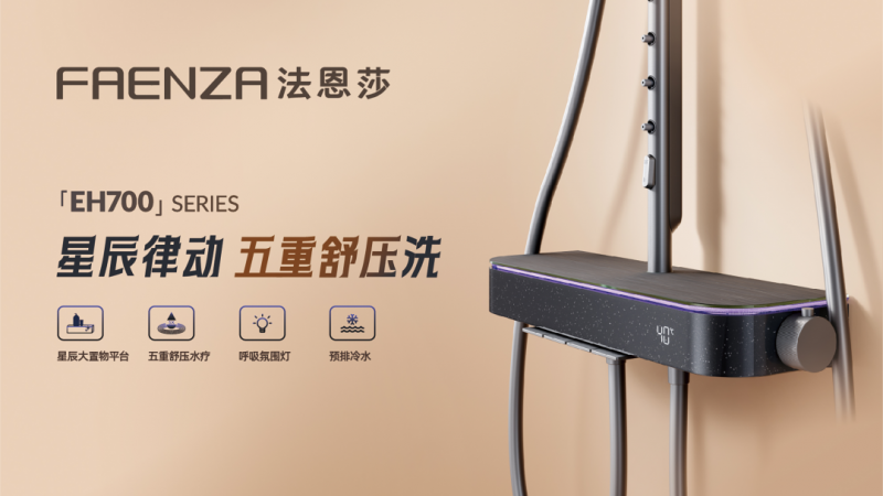 于適配維度,E650系列淋浴花灑通過獨特的雙手持組合可調(diào)卡座,解構(gòu)傳統(tǒng)沐浴邏輯,關(guān)照兒童、寵物及多代際的復(fù)合場景;EH700系列以460mm星辰置物平臺與光流氛圍燈,五重水路搭配出個性化舒壓水療方案,回應(yīng)從白領(lǐng)人群及運動人士的細膩訴求;WH900暗裝系統(tǒng)則提供高度模塊化的出水組合,賦予用戶定制專屬DIY場景的自主權(quán),詮釋“全場景適配”的柔性智慧。