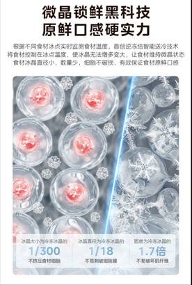 上了一天班回家做飯先要等肉化凍,熱水解凍、微波爐解凍口感流失,這個痛點困擾了用戶許多年。美的冰箱洞察這一用戶需求,2018年行業(yè)首發(fā)微晶一周鮮技術(shù),引領(lǐng)行業(yè)第一次實現(xiàn)了肉類口感保鮮的效果。這項技術(shù)的核心突破在于對冰晶形態(tài)的掌控:通過智能溫控系統(tǒng)實時感知食材冰點變化,精準調(diào)控冷量輸送節(jié)奏,最終在食材內(nèi)部形成尺寸僅為頭發(fā)絲直徑1%大小的微晶顆粒。這種極細微的冰晶結(jié)構(gòu)從物理層面規(guī)避了傳統(tǒng)冷凍的弊端——既不會刺破肉類食材細胞膜導致營養(yǎng)流失,也不會破壞肌纖維結(jié)構(gòu)造成口感發(fā)柴,真正實現(xiàn)了“在保鮮中鎖鮮”的效果。