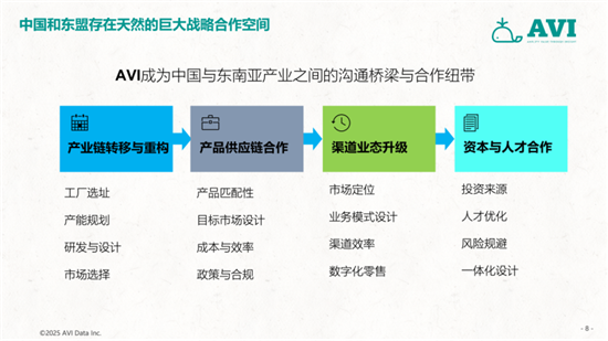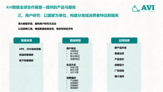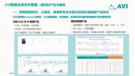 作為中國首家面向全球零售與產業鏈數據市場的第三方大數據機構,AVI data通過搭建一個覆蓋全部線下與線上綜合業態的零售數據采集網絡,并以國家為單位,構建一套以服務多元化企業的出海需求為目標,涵蓋零售、2B工程、上下游產業鏈投資研發生產、渠道分銷、用戶需求洞察、售后服務,包括全流程和全價值鏈的大數據采集和研究服務體系,并通過專業的數據挖掘和分析工具、專業的咨詢服務、幫助客戶做好更加科學的海外市場開發、渠道管理與投融資管理決策,致力于成為中國企業出海的市場考察“望遠鏡”、市場投放“指南針”和市場營銷“倍增器”,推動行業的創新發展,幫助企業實現內外部跨源數據融合,提升市場洞察力和決策效率。