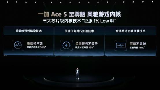 為解決"平均幀率接近滿幀但游戲仍卡頓"的手游體驗(yàn)痛點(diǎn),一加將PC級(jí)游戲評(píng)測(cè)標(biāo)準(zhǔn)1% Low幀納入手機(jī)游戲體驗(yàn)的衡量標(biāo)準(zhǔn)中。1% Low 幀指的是把一段游戲的幀數(shù)從高到低排序,取到最低的 1% 幀的幀率平均值。雖然 1% Low 幀出現(xiàn)的時(shí)間很短,但它往往出現(xiàn)在團(tuán)戰(zhàn)激烈時(shí)刻、鋼槍對(duì)決瞬間、Boss 戰(zhàn)等游戲關(guān)鍵時(shí)刻,對(duì)于整局游戲的流暢體驗(yàn)至關(guān)重要。1%Low幀是最能反映游戲真實(shí)流暢度的幀率指標(biāo),所以真正的流暢游戲體驗(yàn),既要看「平均幀率」,更要看「 1% Low 幀」。一加Ace 5 至尊版在平均幀率滿幀之上,得益于三大芯片內(nèi)核技術(shù),繼續(xù)征服1%Low幀,挑戰(zhàn)消滅游戲卡頓的最后一公里。在《王者榮耀》10v10 龍坑團(tuán)戰(zhàn)、《星鐵》大規(guī)模地圖奔跑測(cè)試和《原神》血戰(zhàn) Boss 等重載游戲場(chǎng)景中,一加Ace 5 至尊版1%Low幀表現(xiàn)均可挑戰(zhàn)行業(yè)最強(qiáng)。行業(yè)內(nèi)只有一加Ace 5 至尊版才能同時(shí)做到平均幀率行業(yè)最高,1%Low幀行業(yè)最優(yōu)。