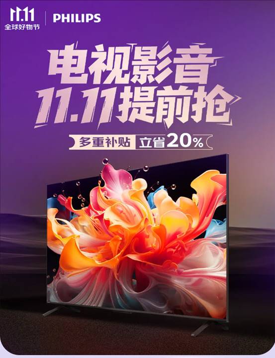 飛利浦電視雙11提前搶!至高20%國家補(bǔ)貼+多重好禮相贈(zèng)
