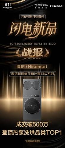 “雙11”熱泵洗烘榜單出爐:海信洗衣機登頂熱泵洗烘TOP1