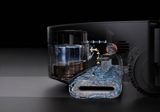 傳統(tǒng)掃地機的清潔流程是用一塊拖布,在清潔全屋的過程中不斷重復(fù)使用,清潔力在使用中不斷遞減。追覓X50 Ultra 履帶版則重構(gòu)了這一流程——它搭載了一套完整的實時自清潔系統(tǒng)。